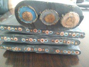 鋼芯銅導(dǎo)體軟芯結(jié)構(gòu)丁腈絕緣纏繞耐火層編織不銹鋼絲鎧裝鋼包車用組合扁電纜 |